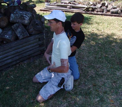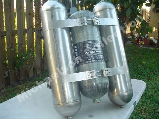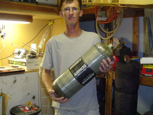 Bill holding his nitrogen high pressure tank that will be used for his belt. |