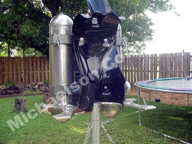 Bill has come a long way on his belt. These are the latest pictures of his stand he built for his rocket belt.