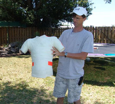 Bill putting the final touches to the model for his Corset. |