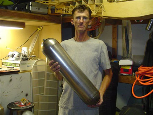 Bill holding one of his Hydrogen Peroxide tanks. |