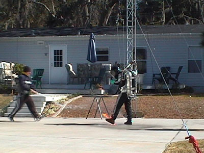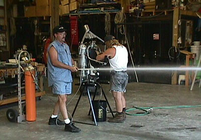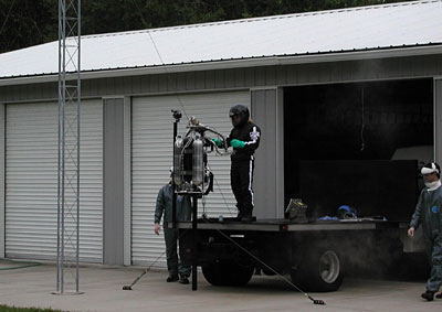 Tom warming up rocket motor.