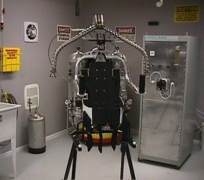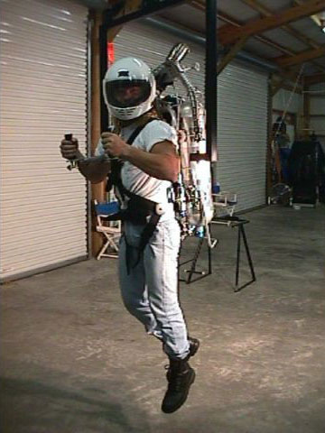 Tom with Rocket Belt on test stand.