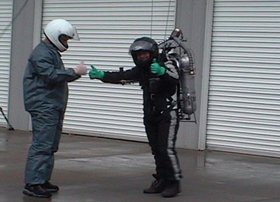Rocket Belt on.