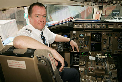 Stuart Ross in the cockpit of the plane.
